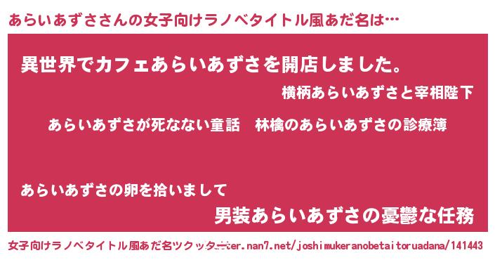 | 意味不明あだ名 | 『住所不定無職あらいあずさ(6歳)』 |
