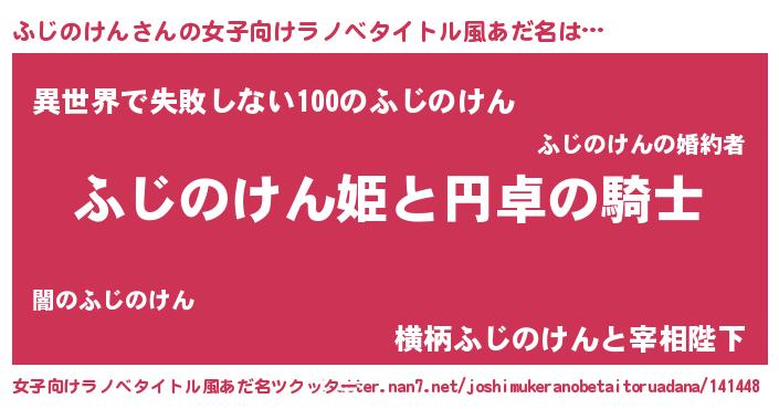 | ヘコむあだ名 | 『ふじもー』『ふじのけん(小並感)』 |