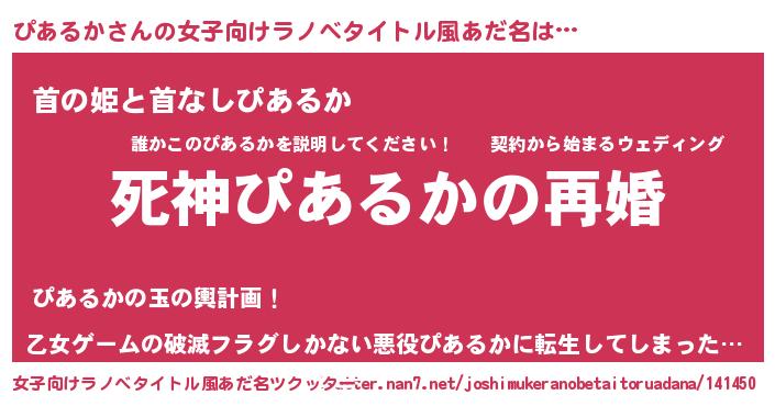 | ヘコむあだ名 | 『ぴあにゅー』『ぴあるか(震え声)』 |