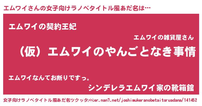 | 男性向けラノベタイトル風あだ名 | 『エムワイの憂鬱』『緋弾のエムワイ』 |