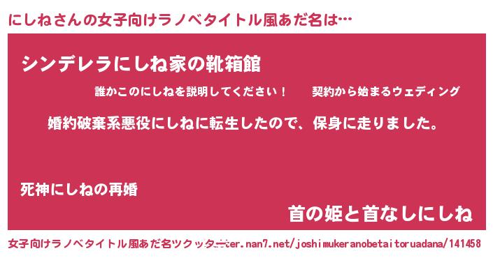 | 胡散臭い通販商品みたいなあだ名 | 『必ず成功する霊験あらたかなお札…その名も「にしね」』 |