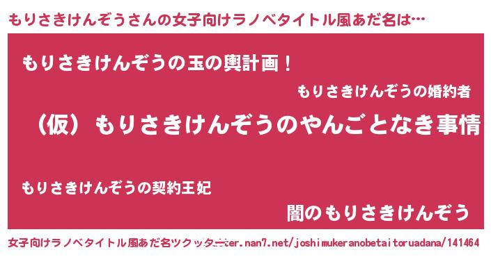 | 男性向けラノベタイトル風あだ名 | 『もりさきけんぞうの憂鬱』 |