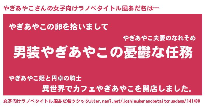 | 男性向けラノベタイトル風あだ名 | 『冴えないやぎあやこの育てかた』 |