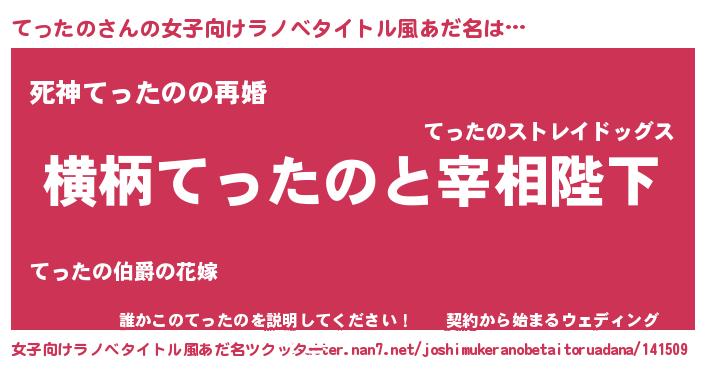 | 男性向けラノベタイトル風あだ名 | 『てったのに滅ぼされるだけの簡単なお仕事です』 |