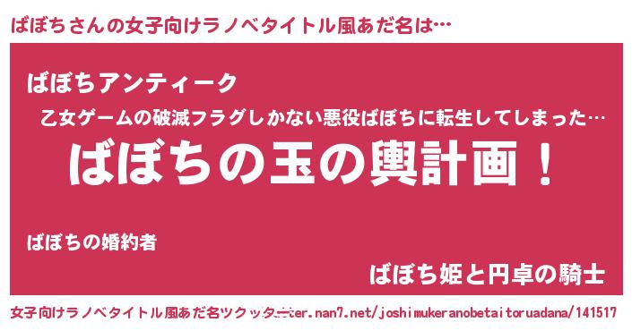 | 胡散臭い通販商品みたいなあだ名 | 『芸能人もオススメする高麗人参…その名も「ばぼち」』 |