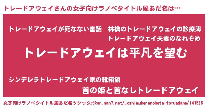 | 男性向けラノベタイトル風あだ名 | 『ダンジョンにトレードアウェイを求めるのは間違っているだろうか』 |