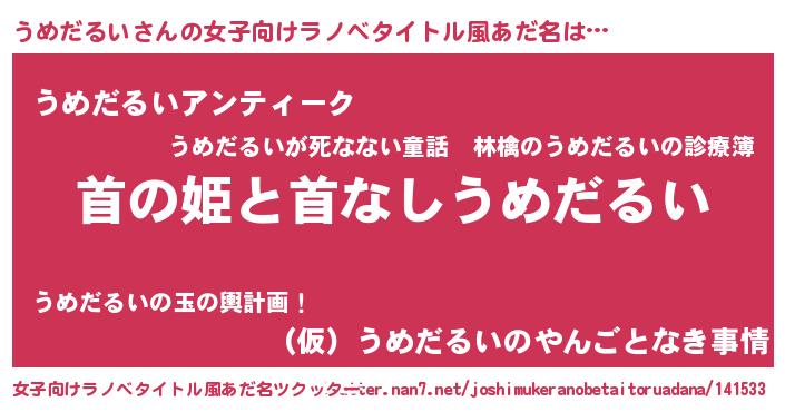| 男性向けラノベタイトル風あだ名 | 『はたらくうめだるいさま!』 |