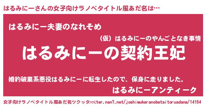 | 男性向けラノベタイトル風あだ名 | 『はるみにーという概念が存在しない退屈な世界 』 |