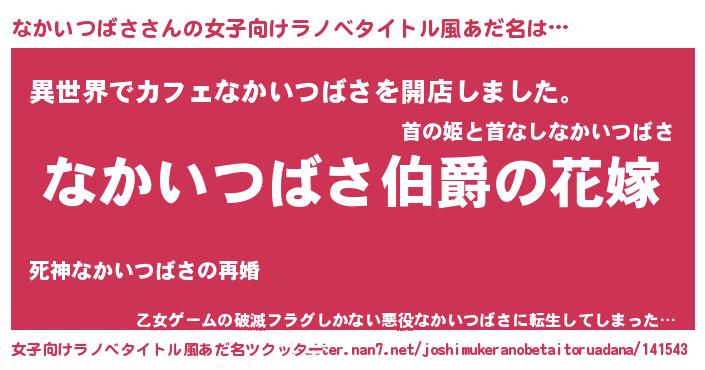 | 胡散臭い通販商品みたいなあだ名 | 『世界が平和になる高級そうな壺…その名も「なかいつばさ」』 |