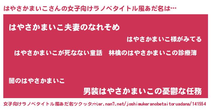 | 意味不明あだ名 | 『住所不定無職はやさかまいこ(98歳)』 |