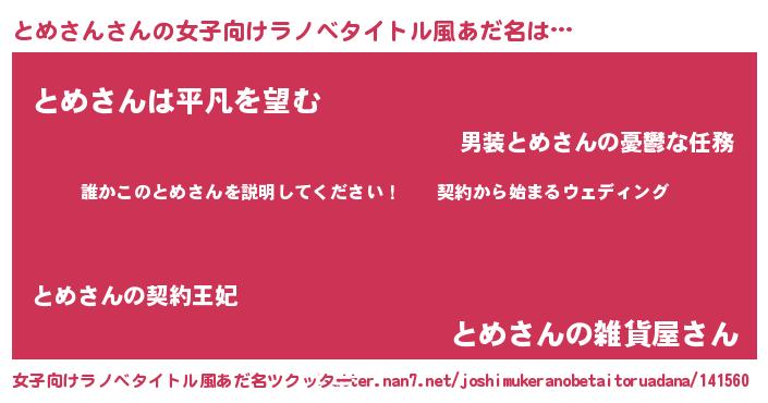 | 男性向けラノベタイトル風あだ名 | 『トメサンアートオンライン』 |