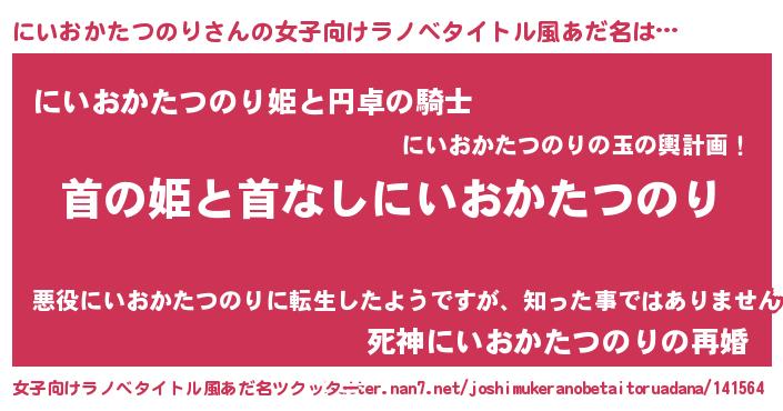 | 男性向けラノベタイトル風あだ名 | 『はたらくにいおかたつのりさま!』 |