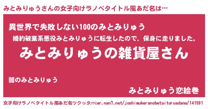| 男性向けラノベタイトル風あだ名 | 『やはりみとみりゅうの青春ラブコメはまちがっている 』 |