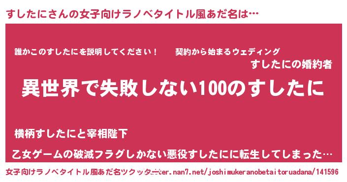 | 男性向けラノベタイトル風あだ名 | 『すしたにという概念が存在しない退屈な世界 』 |