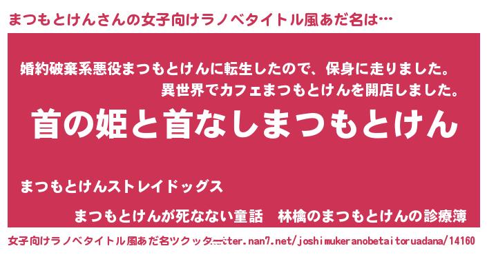 | 男性向けラノベタイトル風あだ名 | 『はたらくまつもとけんさま!』 |