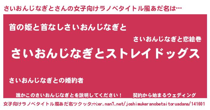 | 男性向けラノベタイトル風あだ名 | 『Re:さいおんじなぎとから始める異世界生活』 |