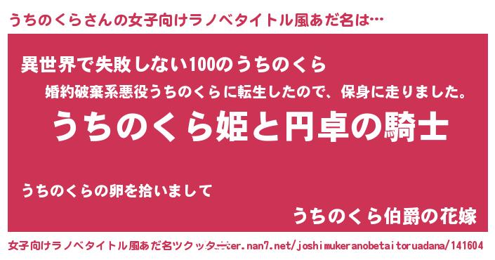 | 男性向けラノベタイトル風あだ名 | 『うちのくらの憂鬱』 |