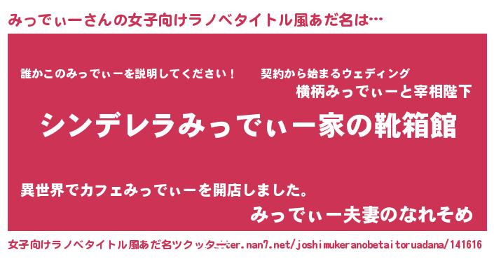 | ヘコむあだ名 | 『みっにー』『みっでぃー(苦笑)』 |