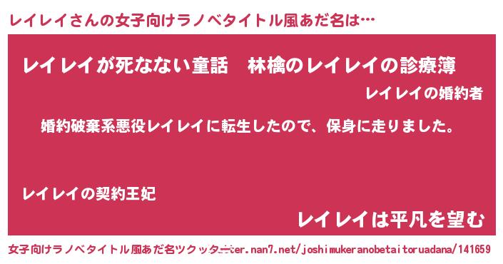 | 男性向けラノベタイトル風あだ名 | 『レイレイスレイヤー』 |