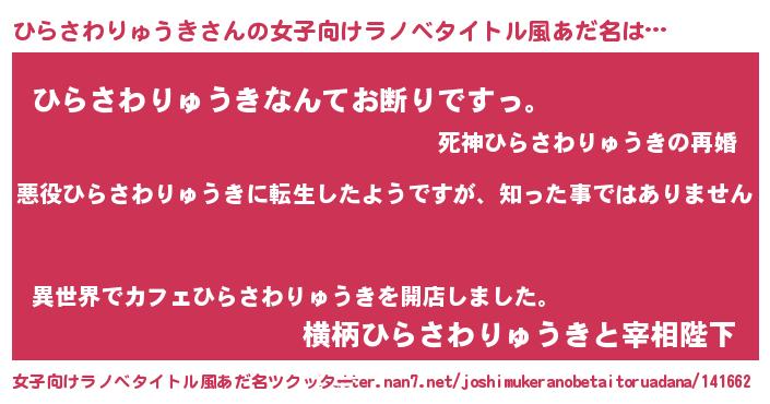 | 胡散臭い通販商品みたいなあだ名 | 『あなたにだけ特別に提供する100年もののヴィンテージワイン…その名も「ひらさわりゅうき」』 |