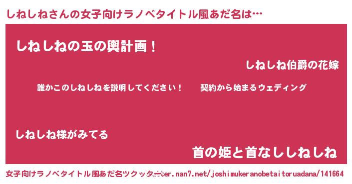 | 男性向けラノベタイトル風あだ名 | 『シネシネアートオンライン』 |