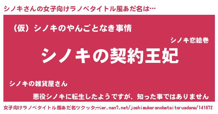 | 男性向けラノベタイトル風あだ名 | 『シノキという概念が存在しない退屈な世界 』 |