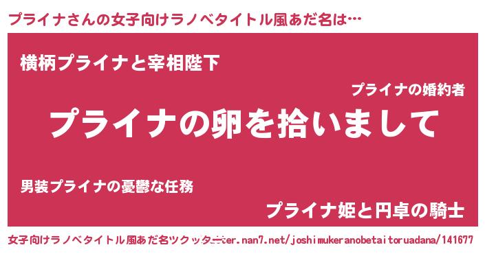 | 意味不明あだ名 | 『とにかく怪しいプライナ』 |