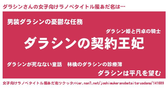 | 男性向けラノベタイトル風あだ名 | 『ダラシンという概念が存在しない退屈な世界 』 |