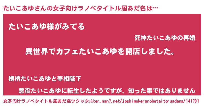 | 胡散臭い通販商品みたいなあだ名 | 『前代未聞の水素水…その名も「たいこあゆ」』 |