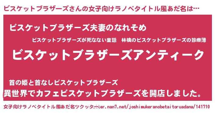 | 胡散臭い通販商品みたいなあだ名 | 『テレビで話題のアガリクス…その名も「ビスケットブラザーズ」』 |