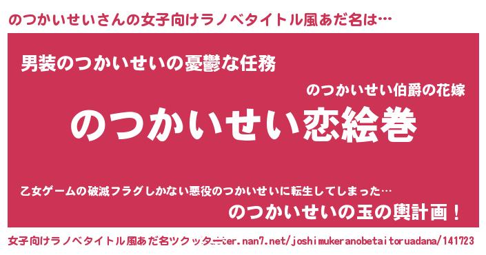 | 男性向けラノベタイトル風あだ名 | 『ノーゲーム・ノーノツカイセイ』 |