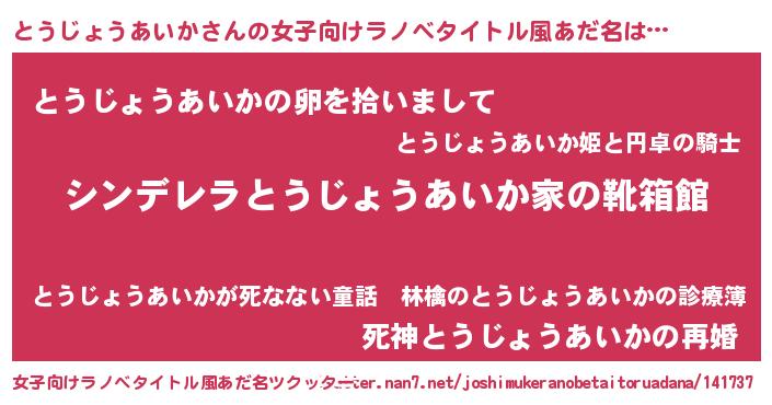 | 胡散臭い通販商品みたいなあだ名 | 『信頼と実績のネックレス…その名も「とうじょうあいか」』 |