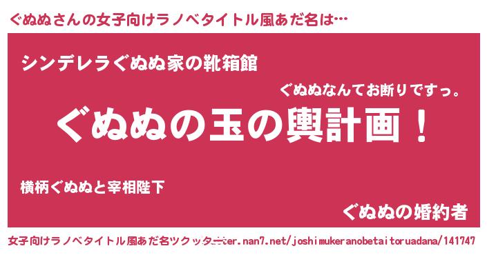 | 胡散臭い通販商品みたいなあだ名 | 『運命の人と巡り会える高級そうな皿…その名も「ぐぬぬ」』 |