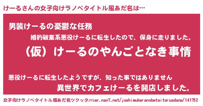 | 男性向けラノベタイトル風あだ名 | 『けーるの憂鬱』『ケールスレイヤー』 |