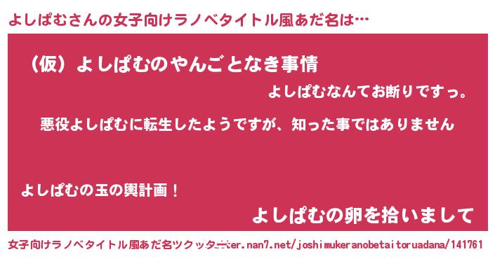 | 意味不明あだ名 | 『住所不定無職よしぱむ(50歳)』 |