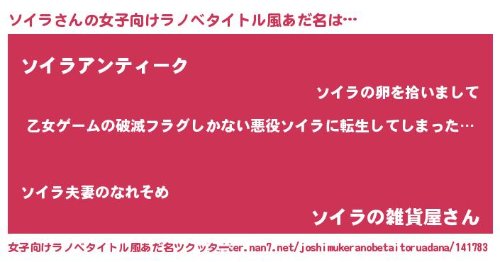| ヒーロー風カッコイイあだ名 | 『仮面ソイダー』『サイバー戦士ソイラ』 |
