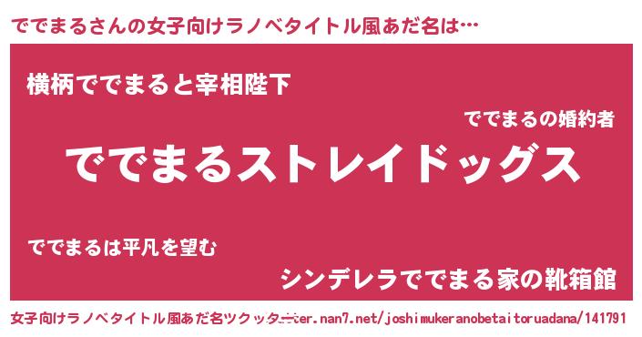 | 男性向けラノベタイトル風あだ名 | 『Re:ででまるから始める異世界生活』 |