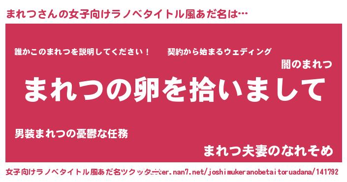 | 意味不明あだ名 | 『とにかく怪しいまれつ』『自称まれつ』 |