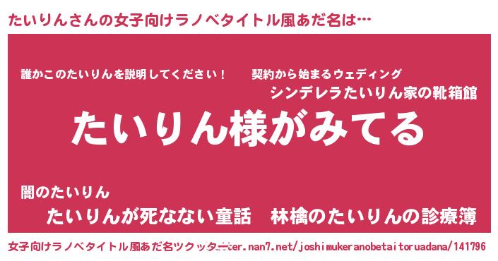 | 男性向けラノベタイトル風あだ名 | 『たいりんの嫁は女の子じゃないと思った?』 |