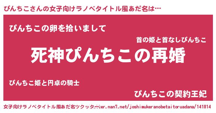 | 男性向けラノベタイトル風あだ名 | 『ノーゲーム・ノーピンチコ』 |