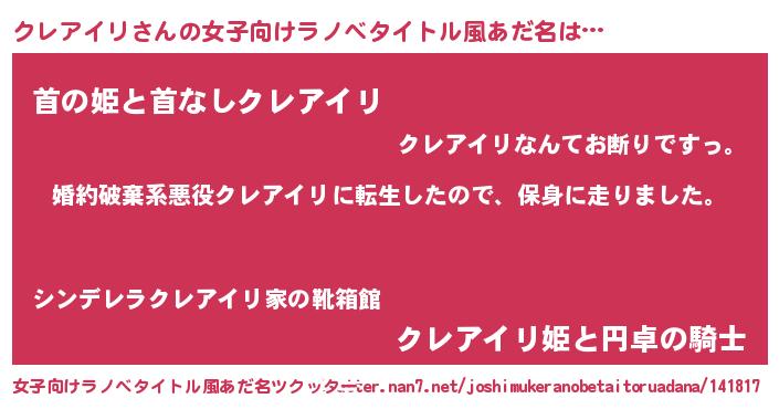 | 胡散臭い通販商品みたいなあだ名 | 『必ず成功するブレスレット…その名も「クレアイリ」』 |