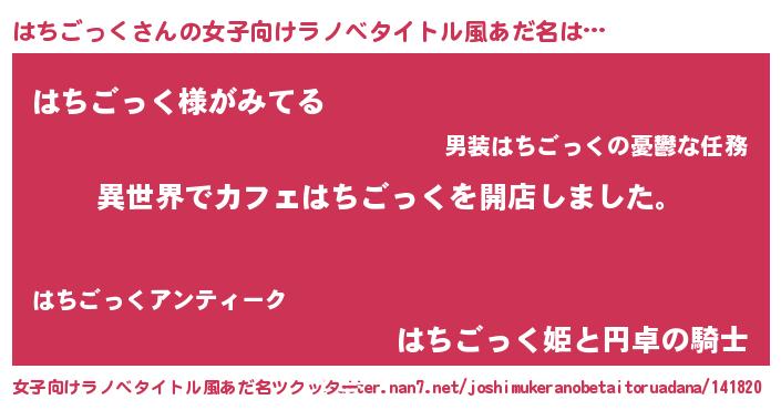 | 男性向けラノベタイトル風あだ名 | 『誰もが恐れるあのはちごっくが、ぼくの専属メイドになるようです。』 |