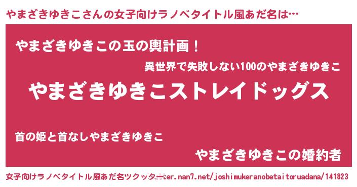 | 男性向けラノベタイトル風あだ名 | 『Re:やまざきゆきこから始める異世界生活』 |