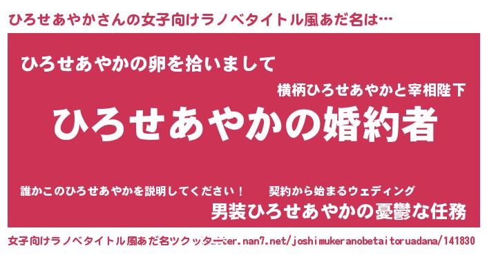 | ポケモン風あだ名 | 『ヒロセダネ』『ヒヒロセアヤカ』 |