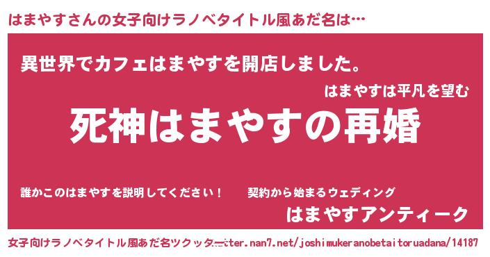 | 男性向けラノベタイトル風あだ名 | 『ノーゲーム・ノーハマヤス』 |