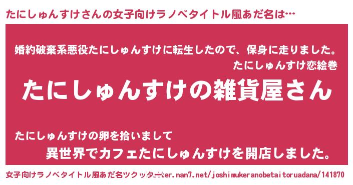 | 男性向けラノベタイトル風あだ名 | 『やはりたにしゅんすけの青春ラブコメはまちがっている 』 |