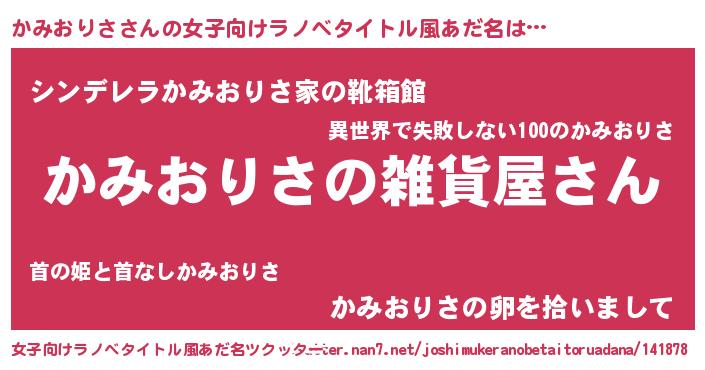 | 男性向けラノベタイトル風あだ名 | 『やはりかみおりさの青春ラブコメはまちがっている 』 |