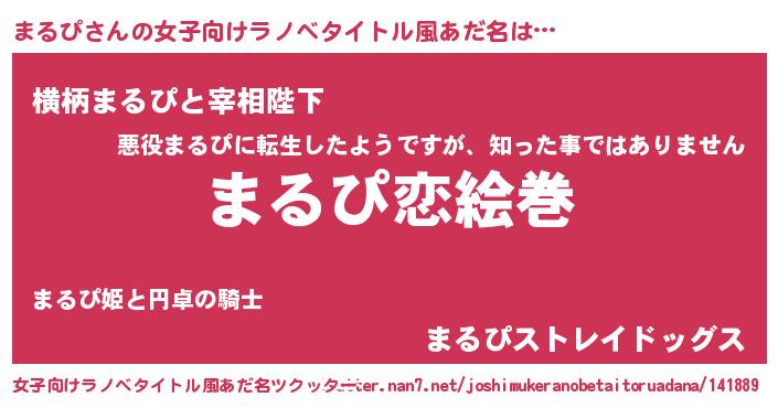 | ヒーロー風カッコイイあだ名 | 『慈愛の使者まるぴ』『究極戦士マルピ』 |
