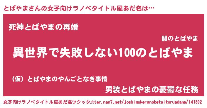 | 男性向けラノベタイトル風あだ名 | 『とばやまという概念が存在しない退屈な世界 』 |