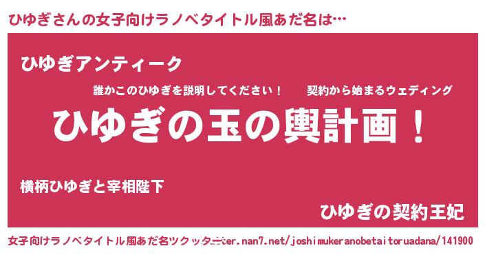 | 男性向けラノベタイトル風あだ名 | 『転生したらひゆぎだった件』 |